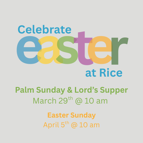 Life is better when we gather together. At Rice, we believe God designed us for community—worshiping, encouraging one another, and growing in faith. Our events give us the chance to connect, serve, and celebrate as a church family. Explore what’s happening below and join us as we gather.